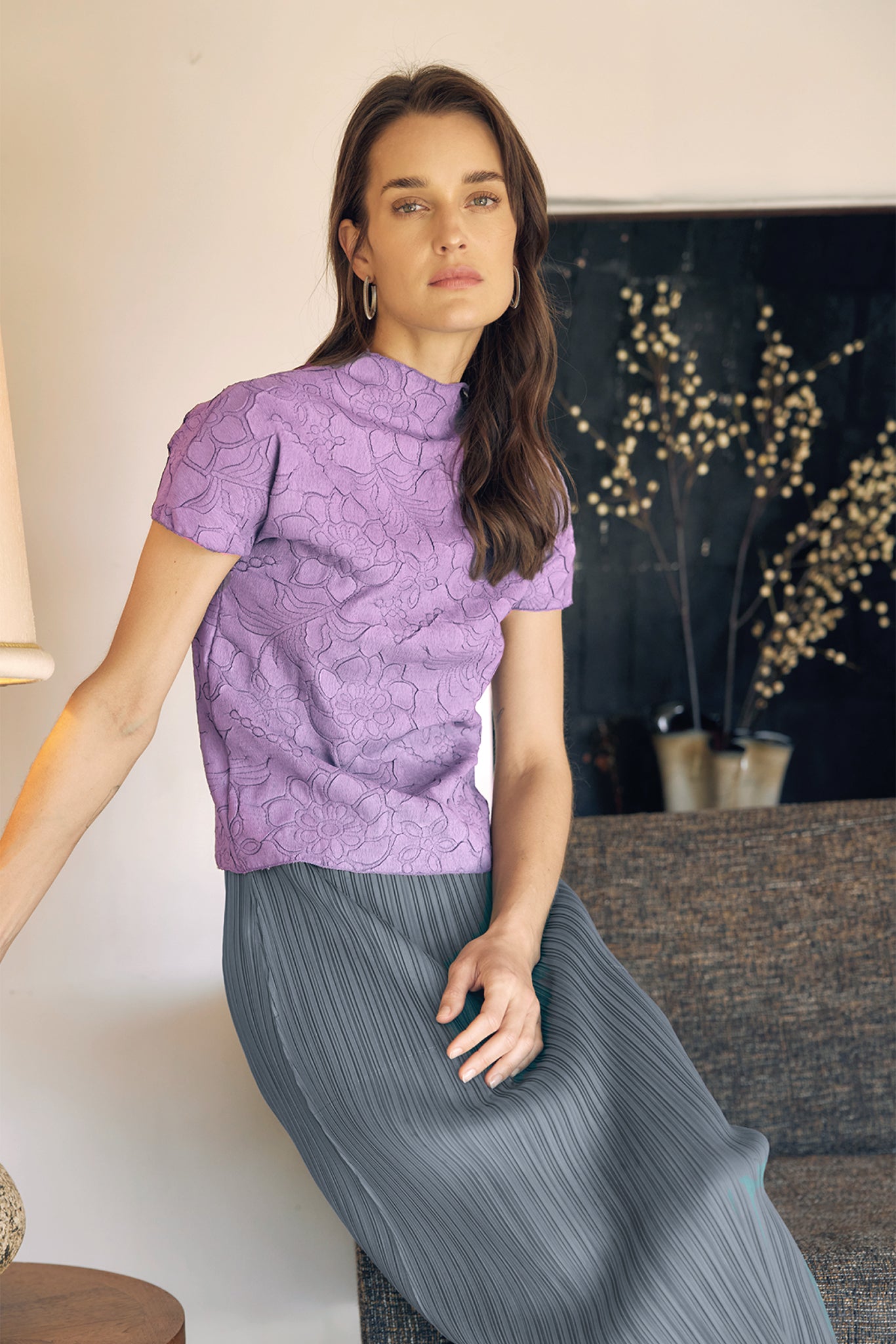 Chloe Lettuce Edge Floral Jacquard Top